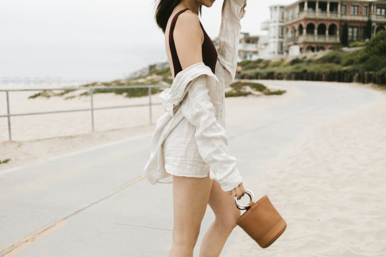 Finally, let’s talk about the magic of multi-tasking pieces. If you think double-duty garments are impressive, wait until you see this triple-duty option: the classic linen button-down. This isn’t your average shirt—it’s a fashion chameleon. Over my one-piece Eres suit, this linen button-down works perfectly as a cover-up, lending a relaxed, elegant air to the look. But the versatility doesn’t stop there. Button it all the way up and you have a chic shirt dress ready for a casual office meeting, or throw it over a pair of jeans with a half tuck for an oversized, laid-back vibe that’s perfect for a sunny day out.