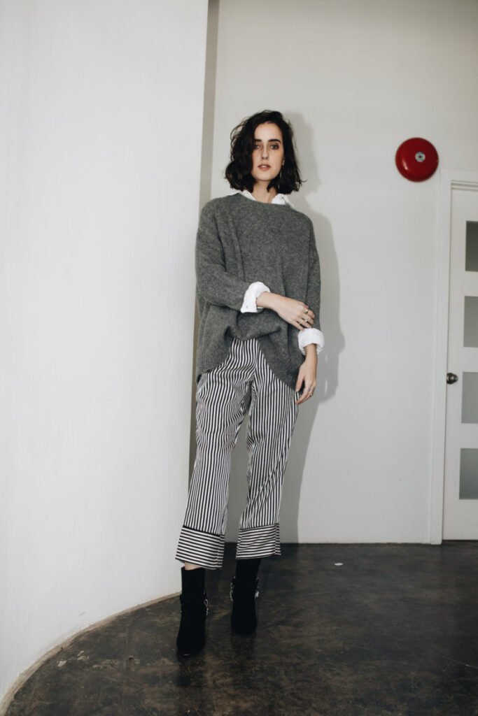 A timeless way to transition a button-down for autumn is by adding an oversized knit sweater. This not only provides warmth but also creates a polished, preppy aesthetic that’s perfect for cooler days. Plus, the layered look is ideal for fluctuating temperatures—simply remove the sweater when the afternoon sun makes an appearance. Roll up the sleeves of the button-down to maintain a relaxed yet refined vibe, and pair with ankle boots or classic sneakers for a perfect balance between comfort and style.