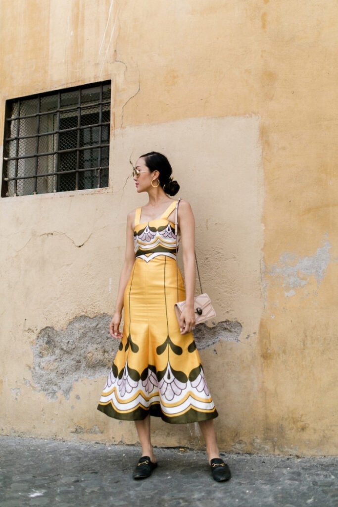 Then came Rome—the city that stole my heart with its unforgettable explosion of color and history. I had visited Rome briefly last year for a Fendi runway show, and the vivid hues of the ancient walls and vibrant street art left a lasting impression. Determined to immerse myself in that colorful ambiance, I dedicated my Roman wardrobe to bold, eye-catching pieces. On the first day in Rome, I wore a stunning yellow two-piece set that was both effortless and undeniably chic. The bright hue perfectly mirrored the rustic pinks, yellows, and oranges that adorned the city’s historic facades, making my outfit a celebration of Roman life. That day was punctuated by my very first Italian pasta experience—a moment forever etched in my memory, thanks in part to the vibrant look that accompanied it.