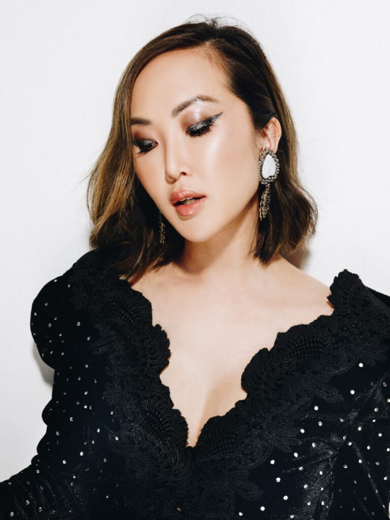 To create a dazzling NYE makeup look, my go-to makeup artist, Allison, crafted an eye-catching combination of bold liner and luminous skin. Here’s how you can recreate it: